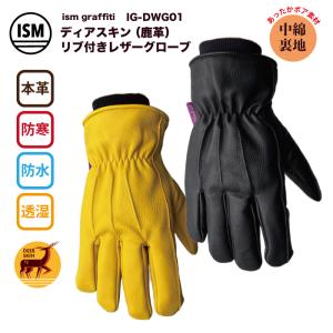 バイク グローブ 冬 革 ウィンターグローブ レザー 防寒 防風 防水 透湿 ディアスキン 鹿革 tethinsulate 冬用 暖かい リブ付きグローブ 送料無料 ISM IG-DWG01