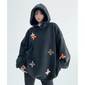 パーカー 韓国ファッション OISISカラフルフラワーパッチフーディー レディース