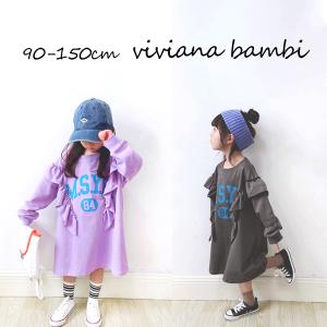 韓国子供服 フリル付きロゴワンピース ワンピース 子供服 女の子 可愛い 90 100 110 120 130 140 150