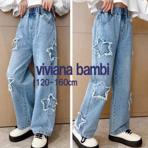 韓国子供服 星デニムパンツ パッチワーク ダンスワイドデニム デザインデニム 女の子120 130 140 150 160