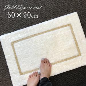 トイレマット 高級ブランド 風水 綿 おしゃれ かわいい 白 ホワイトゴールドゴールドスクエア トイレマット 60×60cm