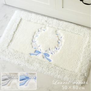 玄関マット屋内 おしゃれ かわいい 風水 北 大判 日本製 洗える リボン 白 アイボリー ホワイト ブルー グレー ベージュ ローレルリース 50×80cm
