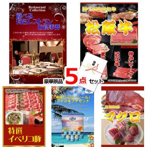 忘年会 新年会 景品 セット ビンゴ 二次会 選べる有名レストランお食事券&選べる国産和牛&イベリコ豚他豪華5点セット 景品パネル&引換券付き目録 15080