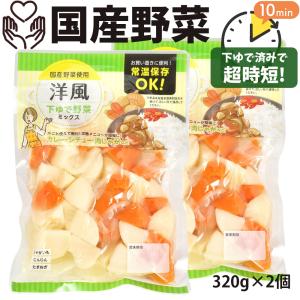 国産野菜 洋風野菜 ミックス 320g×2袋 4人分 水煮 カット野菜 じゃがいも にんじん たまねぎ カレー シチュー 常温保存 キャンプ バーベキュー