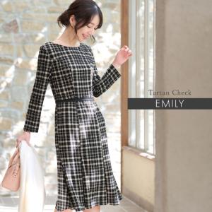 ワンピース レディース 上品 エミリー タータンチェック opd6b-050001 60代 50代 40代 きれいめ 大きいサイズ 膝丈 長袖 春秋冬