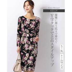 ワンピース ケリー Yライン グレイスブーケ きれいめ 30代 40代 50代 着やせ 上品 大きいサイズ トールサイズあり opj6f-050002 膝丈 ひざ丈 九分袖 長袖 春秋冬