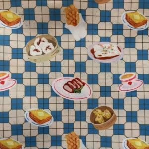 香港B級グルメ 茶餐庁 氷室 食べ物 タイル 防水 複合素材 ブレンドファブリック 約142x90cm