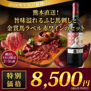 ワイン ワインセット 赤ワイン 熊本直送!旨味溢れるふじ馬刺しと金賞馬ラベル赤ワインのセット