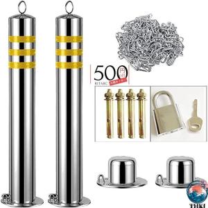 駐車場ポール 車止め 2個セット ステンレス バリアポスト KNK 反射ストリップ付き 駐車スペースをブロック 防犯対策 立てやすい 取り付け簡単 施設・家庭用