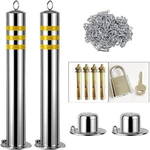 駐車場ポール車止め2個駐車場ポールステンレス鋼車止めスタンドポール駐車スペースをブロックするバリアポスト錦反射ストリップ付き駐車場ポストドライ