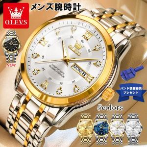 腕時計 メンズ 防水 ステンレスベルト かっこいい クラシック 日付 曜日 夜光インデックス アナログ おしゃれ 大人 ストーン 高級感 高見え OLEVS