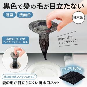髪の毛が目立ちにくい排水口ネット 100本入 排水口ネット ネット 黒 髪の毛 ゴミ ゴミ受け ヘアキャッチャー 目皿 風呂 浴室 洗面台 大容量 日本製