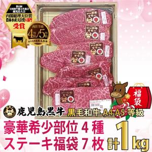 ステーキ 黒毛和牛 A4・A5等級 鹿児島黒牛 豪華希少部位ステーキ福袋 みすじ・クリミ・ランプ各2枚・イチボ1枚 計7枚 約1kg 新春初売り・クーポンで20%off 爆買