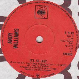 英7” Andy Williams Its So Easy S5113 CBS /00080