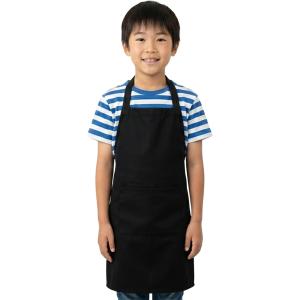 子供用エプロン シンプル 無地 男女兼用 前ポケット付き お手伝い 料理 工作 給食当番 (ブラック, L)