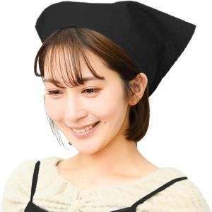 三角巾 シンプル ひも式 無地 大人用 男女兼用 カフェ 業務用 料理教室(ブラック, 本体:横 55cmx縦 38cm ひも:巾1)