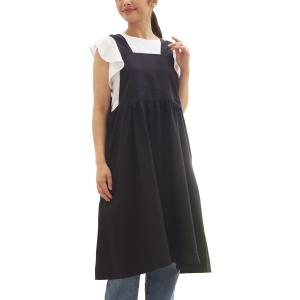 2WAYワンピースエプロン レディース 表裏 普段着 おしゃれ かわいい 可愛い シンプル 女性 メンズ シワになりにくい MDM(ブラック)