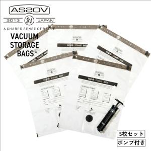 AS2OV アッソブ VACUUM STORAGE BAGS 圧縮袋 5枚セット ポンプ付き パッキング コンパクト ストレージバッグ 旅行 アウトドア 出張 荷物