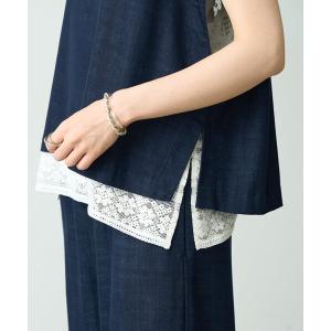 tシャツ フリル刺繍ドッキングプルオーバー レディース