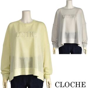 CLOCHE ロゴ ニット セーター レディース ゆったり 春 イエロー グレージュ 40代 50代