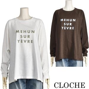 CLOCHE ロゴ カットソー レディース ロング 長袖 ゆったり ホワイト 白 ブラウン 40代 50代