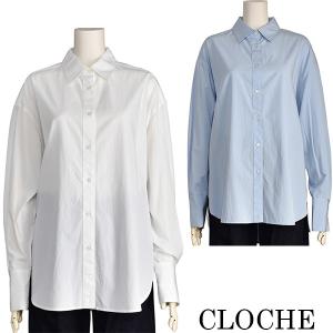 CLOCHE シャツ ロング レディース 長袖 ゆったり ホワイト ブルー 40代 50代