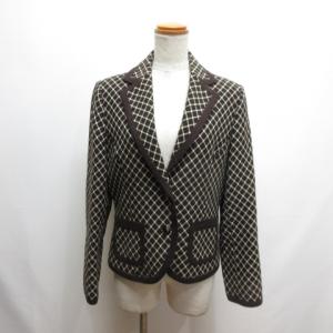 ブルーベル Bluebell 美品 ウール混 テーラード ジャケット 40 茶 ダークブラウン 総柄 ジャガード 裏地付き 日本製 レディース