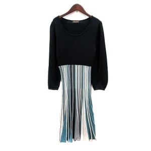 ブルーベル Bluebell ワンピース ニット ミモレ ロング ストライプ 長袖 40 L 黒 ブラック 青 ブルー /MN レディース