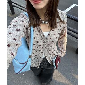カーディガン リボンアーガイルニットカーディガン レディース