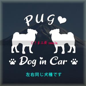 パグ 2頭飼 多頭飼 ステッカー 同一犬種 シルエット DOGinCAR 犬 シール 車 ペット