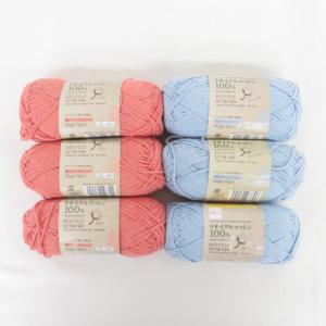 DAISO ダイソー 毛糸 リサイクルコットンヤーン 6玉セット サックスブルー コーラルピンク 1玉約50g 約120m リサイクルコットン100%