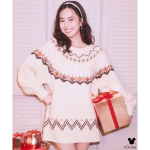 Disney/ミッキー刺繍ノルディックニットチュニック