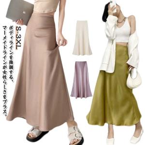 ロングスカート マーメイドスカート サテンスカート 光沢感 サテンタッチ マキシ フレアスカート タイト ロング 春夏 きれいめ 上品 トレンド 着痩