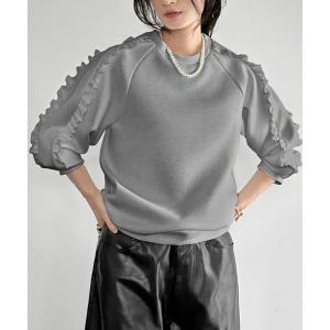 tシャツ 袖フリルクルーネックプルオーバー レディース