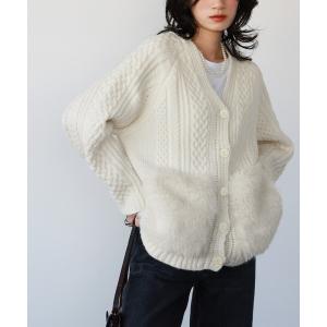 カーディガン 「VERY 1月号掲載」ファーポケットケーブルニットカーディガン レディース