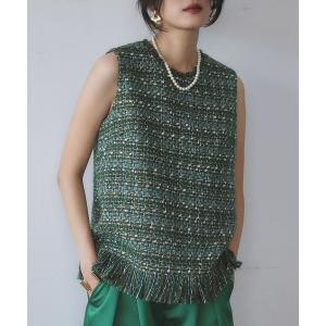 ベスト ジレ 「2025AW」ミックスツイード フリンジ ノースリーブ ベスト レディース