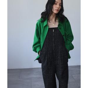 エルフランク ELFRANK ツイード モノトーン フリンジ Iライン オールインワンパンツ (グレーブラック)