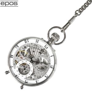 エポス epos 懐中時計 2003GP-N 裏スケルトン ローマン数字 ポケットウォッチ 手巻き シースルー チェーン付 新品 送料無料