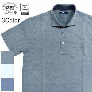 半袖ポロシャツ 裏鹿の子 ポケット付き ワイドカラー 防臭 速乾 25238010 GIM ジム 原宿 ニットの元祖 コットン ポリエステル ブルー ホワイト ディープブルー