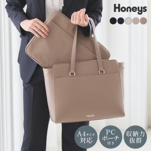 バッグ オフィス 通勤 きれいめ レディース 自立 A4対応 黒 茶 PC 13インチ ビジネス Honeys ハニーズ PCポーチ付A4トート