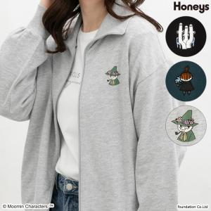 トップス スウェット 長袖 カーディガン ジップ ムーミン 刺繍 プリント コットン 綿 裏毛 ポケット レディース Honeys ハニーズ ムーミン/ジップカーデ