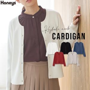 トップス カーディガン 長袖 クルーカーデ クルーネック 無地 セットアップ ストレッチ レーヨン混 レディース Honeys ハニーズ ドット釦クルーカーデ