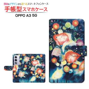 スマホケース OPPO A3 5G クリアケース付 楽天モバイル Y!mobile iijmio 手帳型 ケース カメラ穴対応 F:chocalo デザイン 池田 優 金魚 提灯 夏