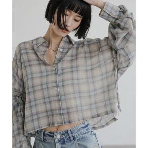 ブラウス シャツ シアーチェックシャツショート 647625 レディース