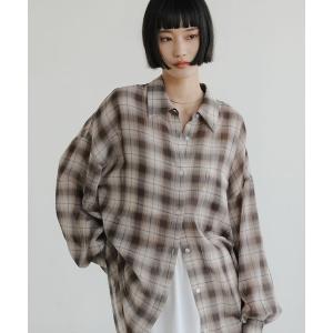 ブラウス シャツ シアーチェックシャツロング 647623 レディース