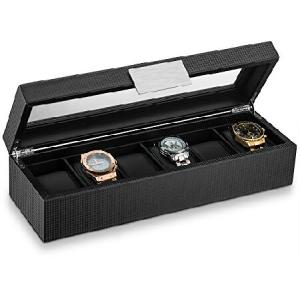 Watch Box for Men - 6 Slot Luxury Carbon Fibre Design Mens Display Case, Large Holder,Metal Buckle -Black