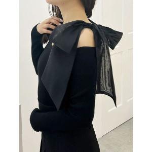 ニット セーター ショルダーリボンオフショルロングスリーブニット レディース