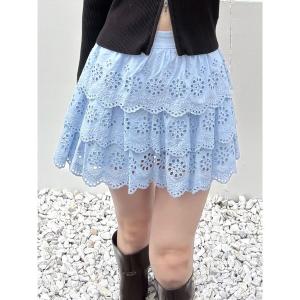 スカート スカラップレースティアードスカパン