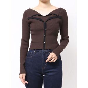 ニット セーター 異素材リボンカットアウトニット レディース