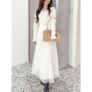 ワンピース ビットニットドットチュールドッキングワンピース
